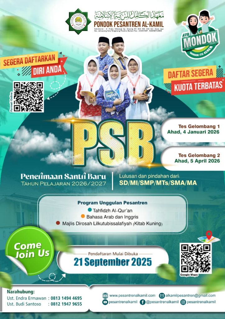 Pondok Pesantren yang Berdiri sejak tahun 2004. Menerapkan sistem pengajaran modern dengan 3 program Unggulan, Program TAHFIDHUL QURAN, Program BAHASA ARAB & INGGRIS dan Program MKTS (kitab kuning).